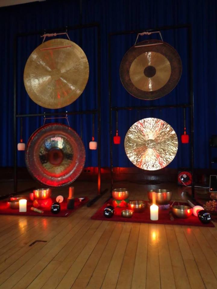 During a soundbath/gongbath or sound meditation, people are invited to lie down on a mat or blanket, or, if preferred, remain seated, keeping warm with blankets, warm clothing and cushions for comfort, whilst receiving a wash of sound vibrations. Typical instruments played include Himalayan singing bowls, various gongs, voice, crystal singing bowls and percussive instruments. The aim of the session is for deep relaxation whilst the sound vibrations wash through the auric field and subtle energy system, cleansing the auric field and subtle energy channels. Typical experiences previously fed back from attendees vary, and include: a feeling of being hot or cold in certain parts of the body or whole body, tingling sensations, visualising colours and geometric shapes, being transported to different dimensions and twitching as energy shifts. In some cases, there have been emotional releases as the sound vibrations trigger mental or emotional attachments or memories. These are all perfectly normal experiences and individuals may encounter various sensations dependent on the frequencies, harmonics, intervals and overtones received. There is an opportunity after the soundbath for sharing, feedback, questions or just remaining relaxed in the energy created during the session. For more personal questions, please feel free to ask me after closing the session.